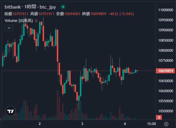 BTC1069万円!XRP210円!