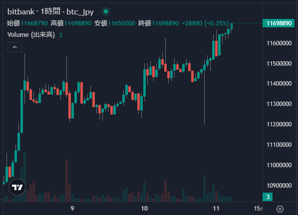 BTC1169万円!XRP217円!上昇!