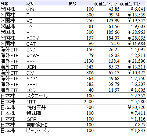 今月の配当金