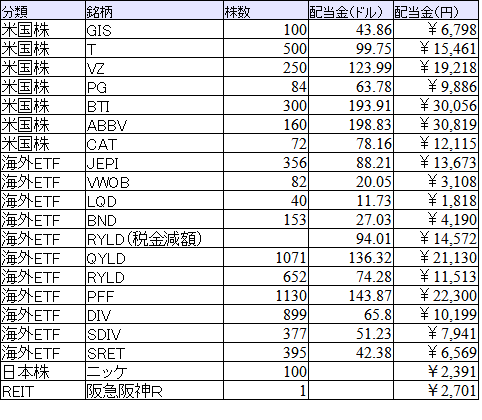 今月の配当金