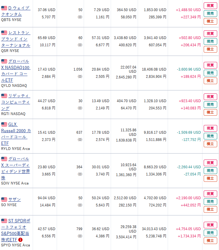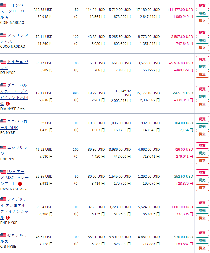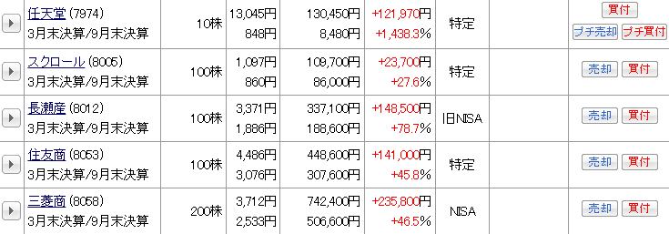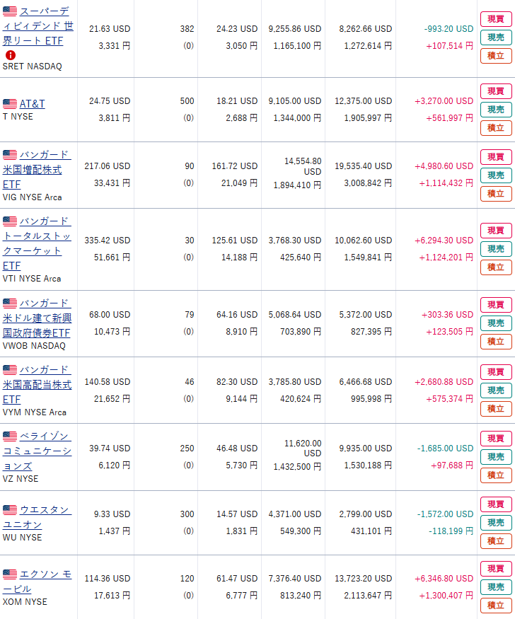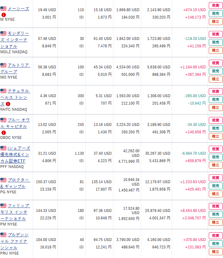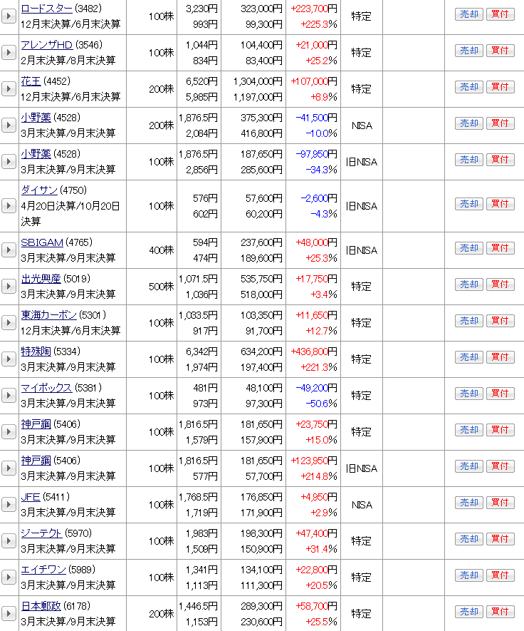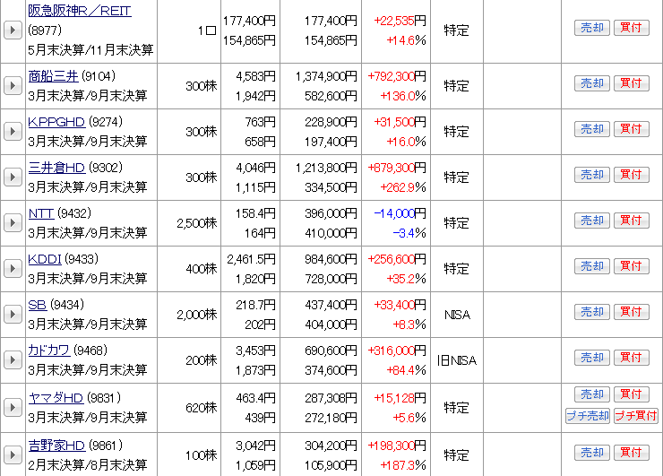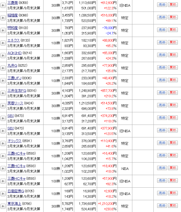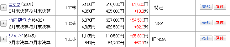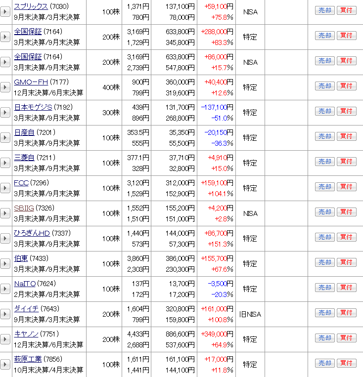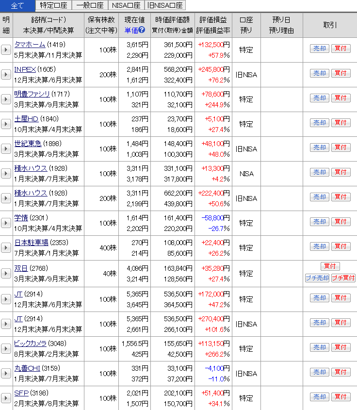 現物株式の資産状況を日本株・日本株(NISA)・米国株の順で公開する。