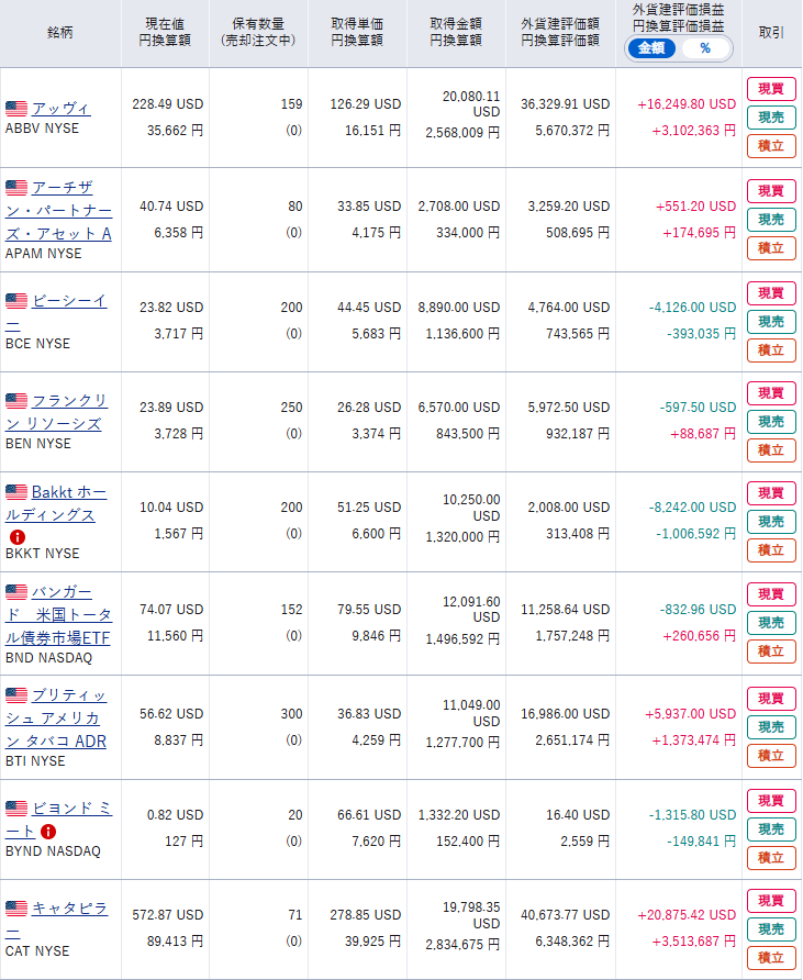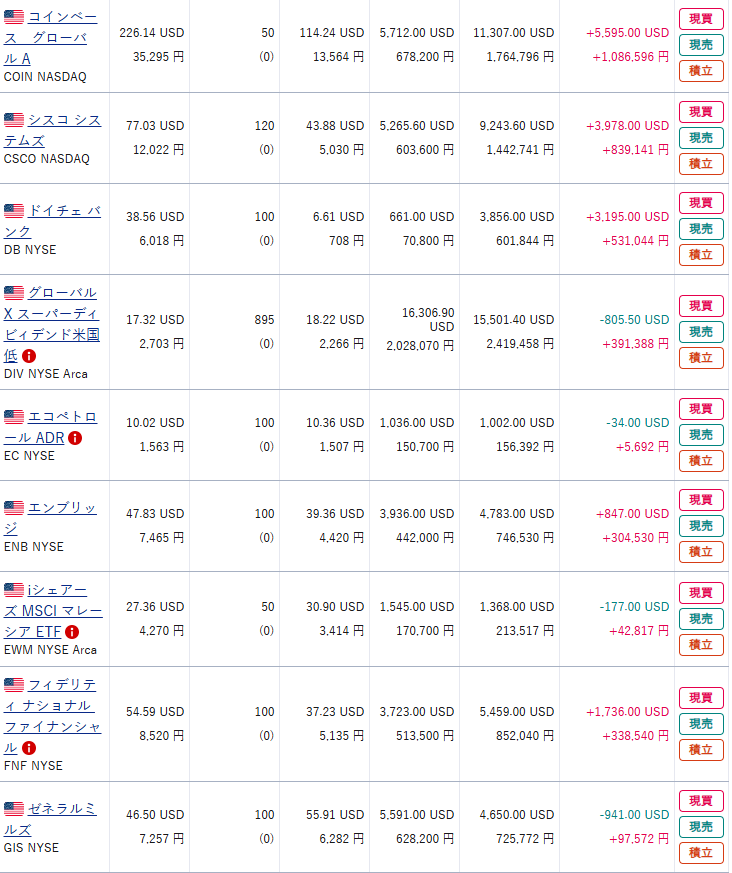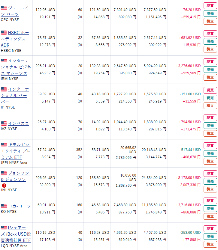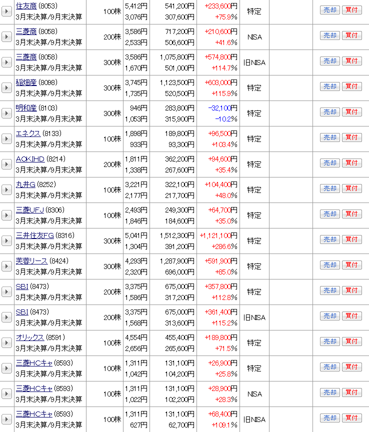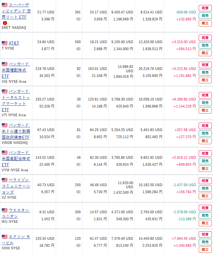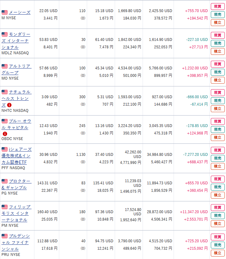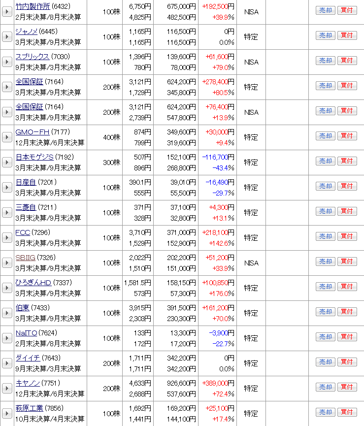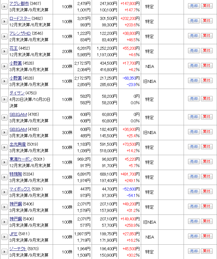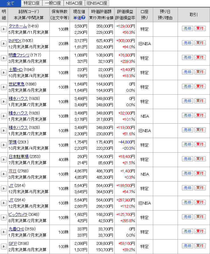 現物株式の資産状況を日本株・日本株(NISA)・米国株の順で公開する。