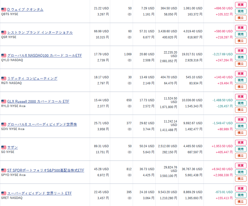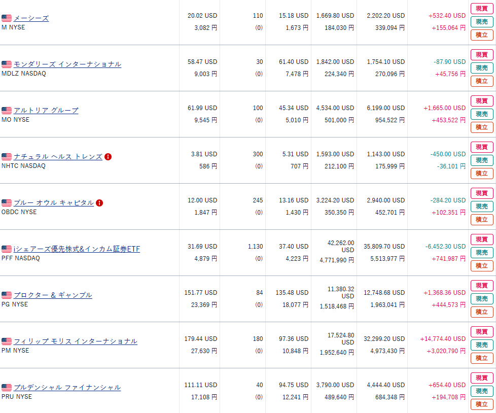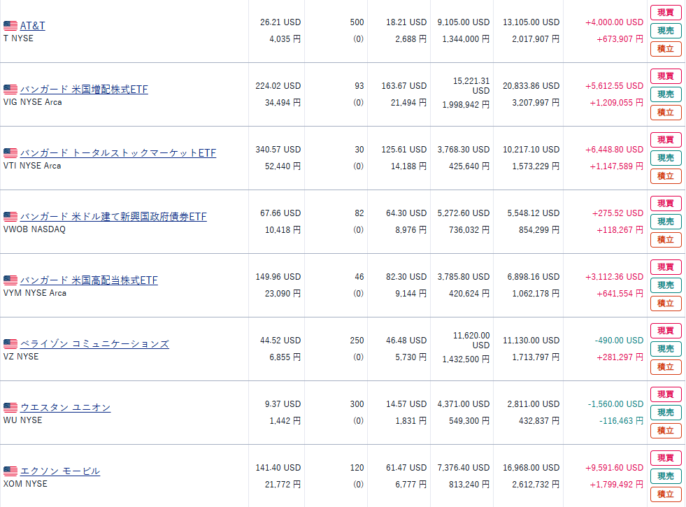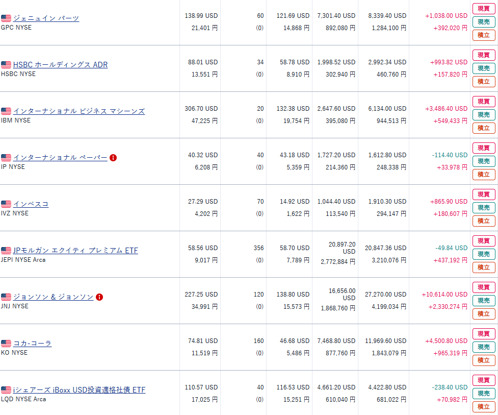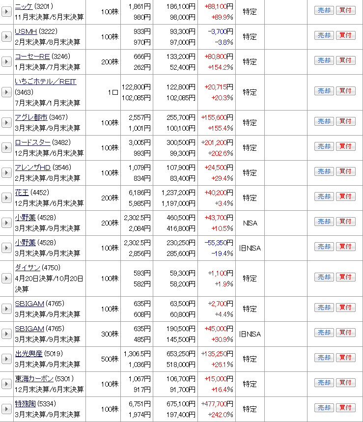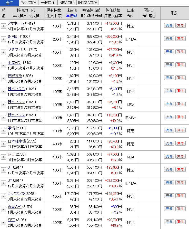 現物株式の資産状況を日本株・日本株(NISA)・米国株の順で公開する。
