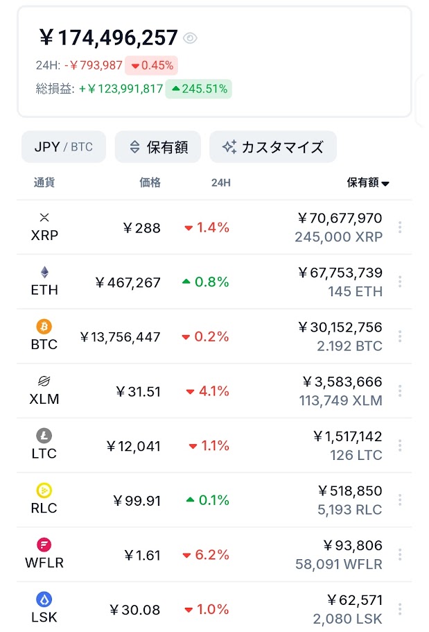 現在の仮想通貨資産