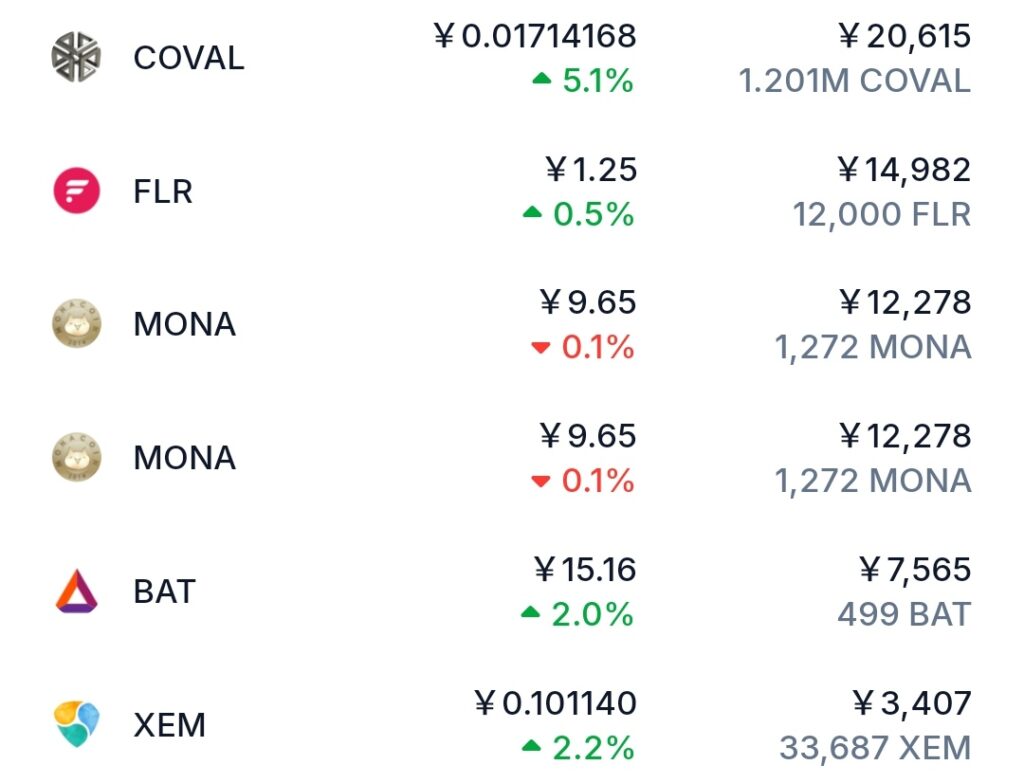 現在の仮想通貨資産