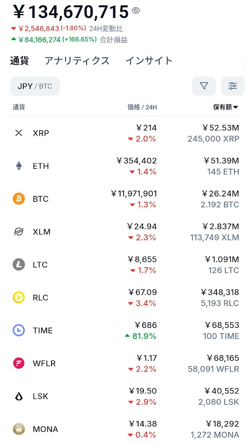 現在の仮想通貨資産